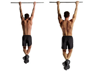 - Start with a shoulder width grip on an overhead bar or rings, palms away, thumbs wrapping the bar.